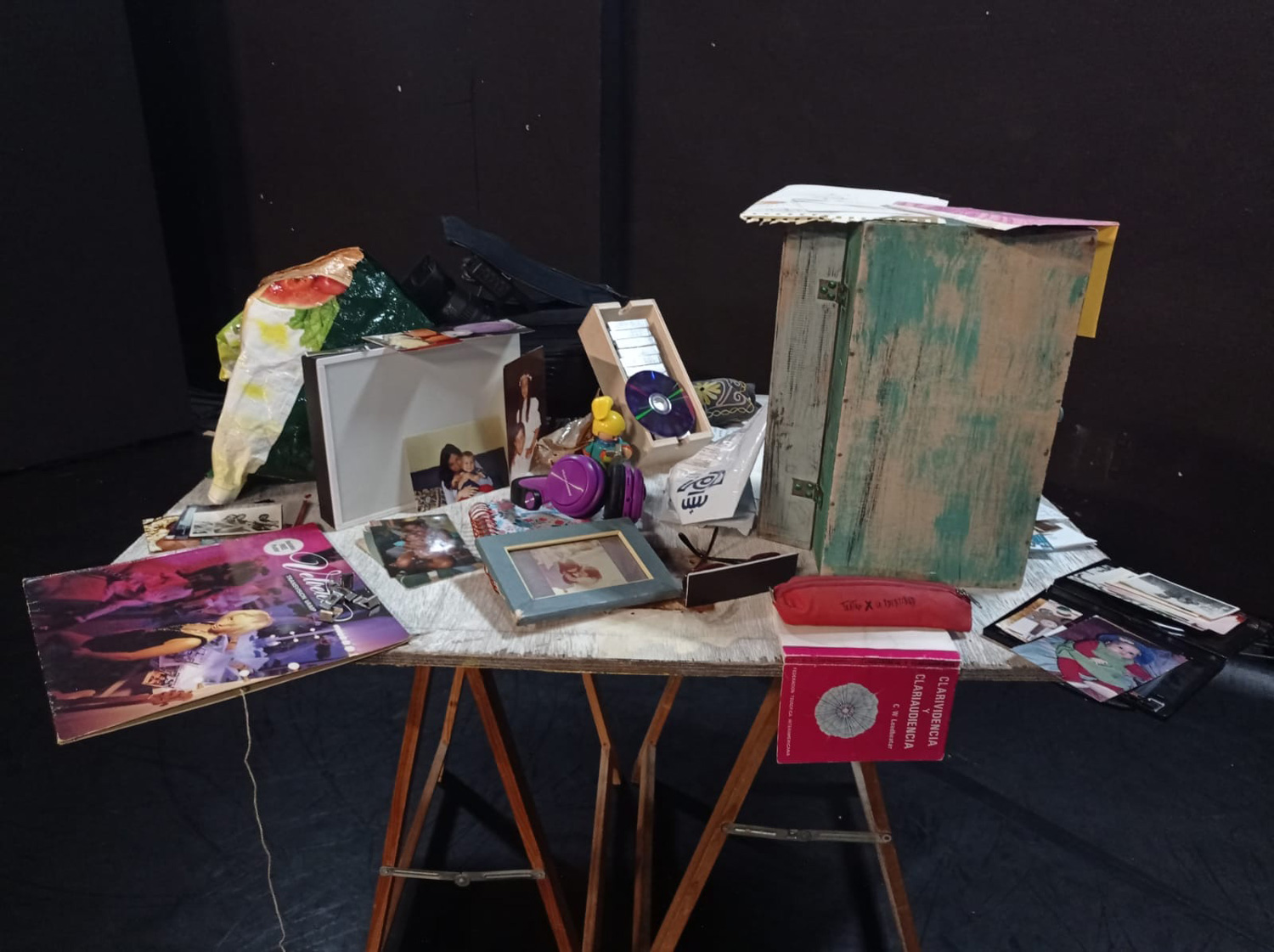 Durante el transcurso de la obra, se va construyendo en escena una instalación formada por algunos objetos recabados durante el proceso de investigación.